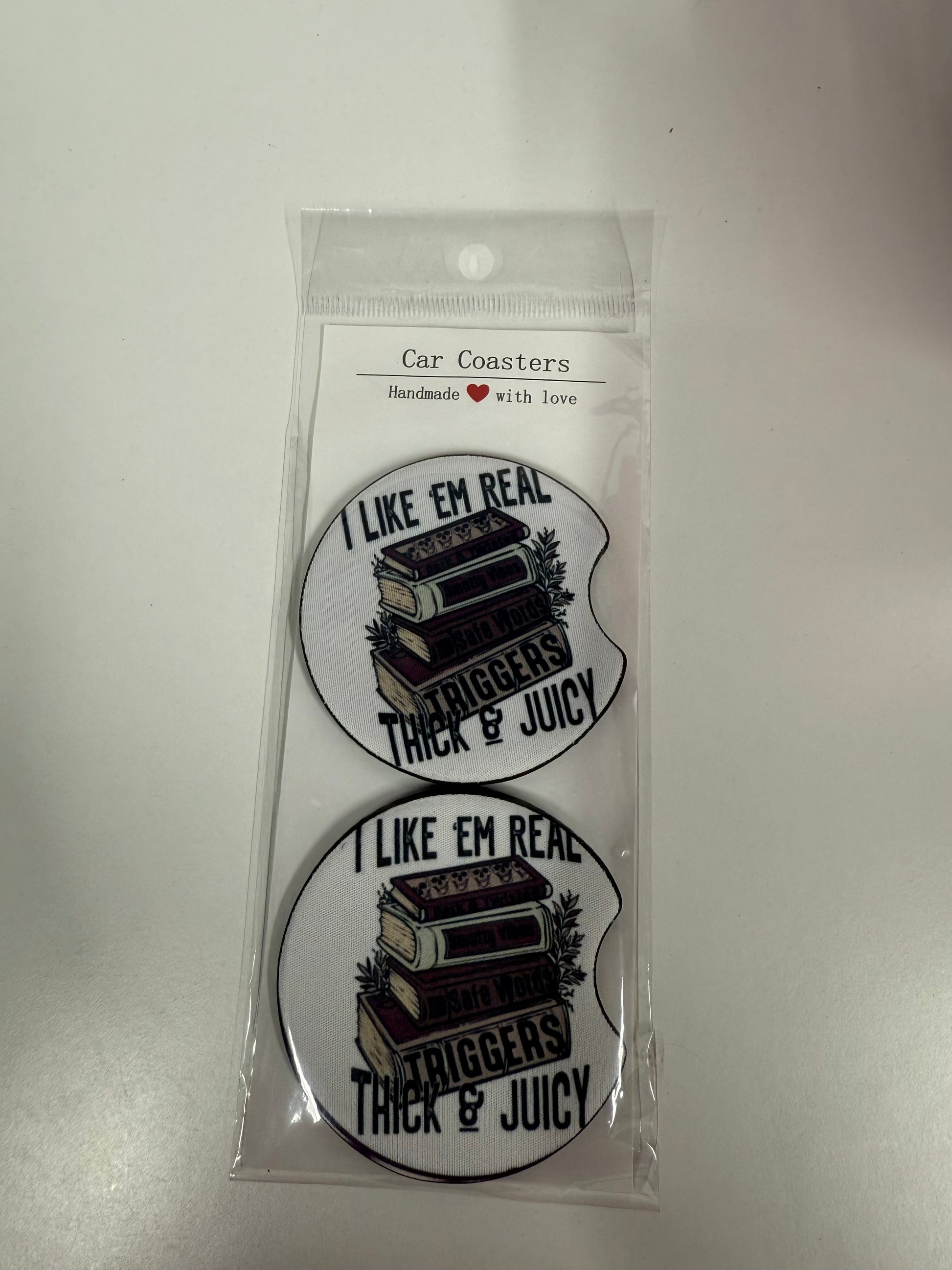 You will receive 1 set of car coasters (2 coasters) of the same design, these can be used inside a vehicle, on a table/counter top or even in your cup holder in your chair!