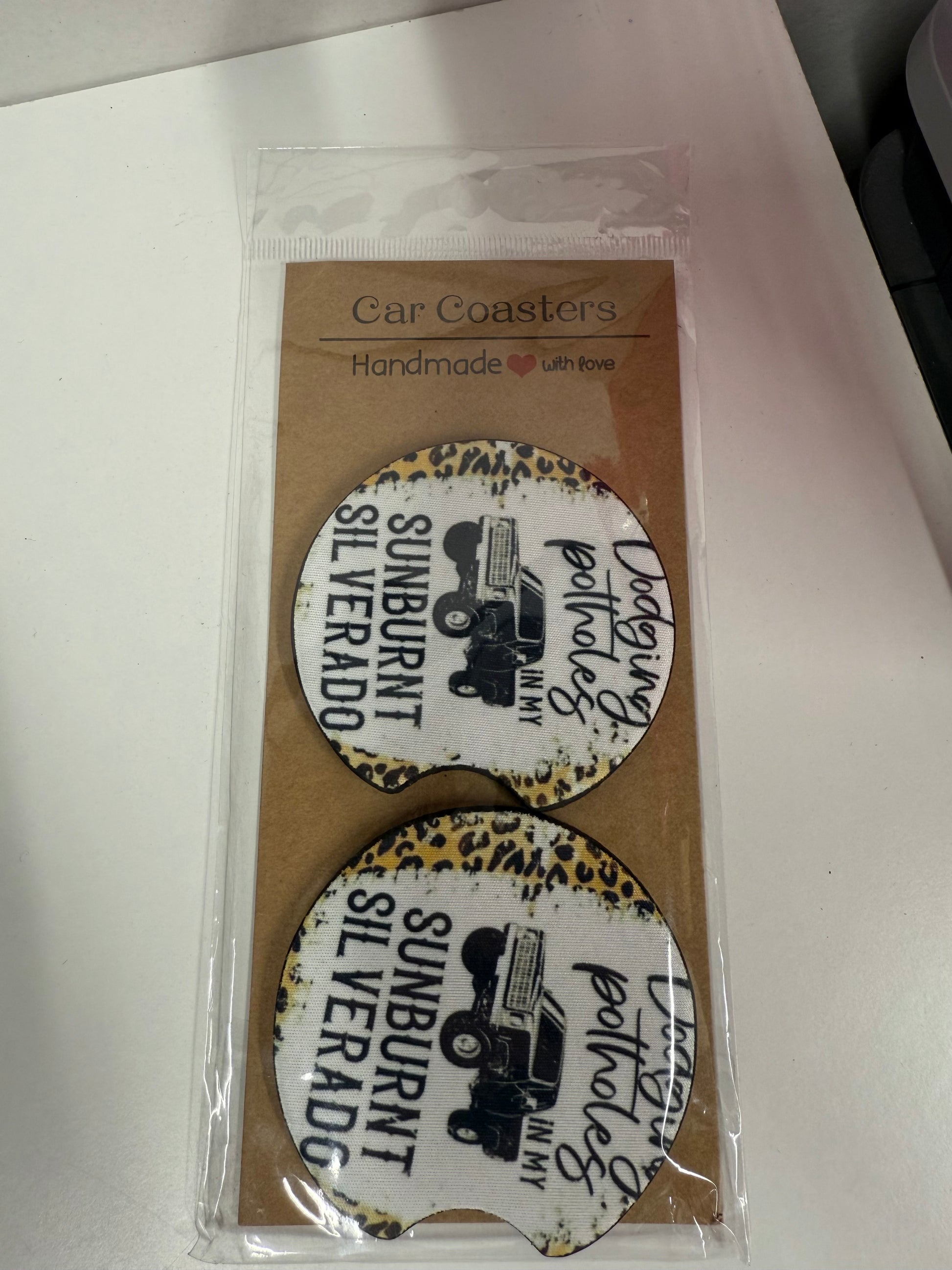 You will receive 1 set of car coasters (2 coasters) of the same design, these can be used inside a vehicle, on a table/counter top or even in your cup holder in your chair!