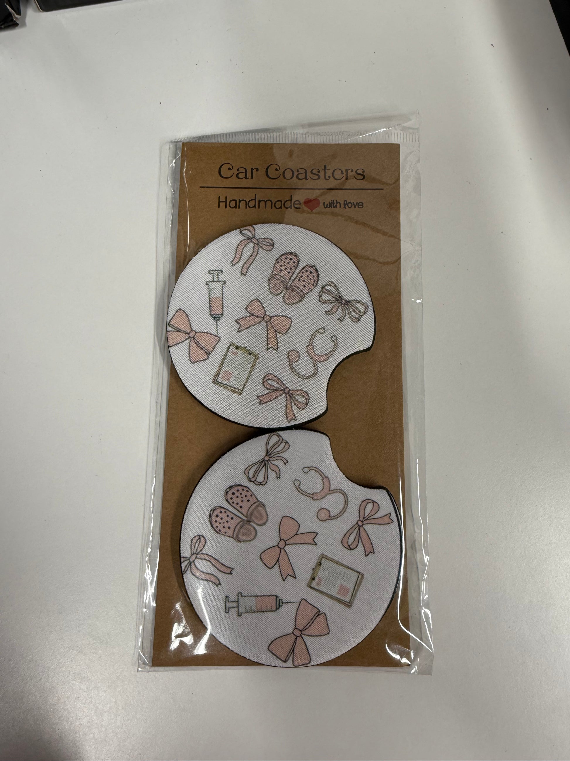 You will receive 1 set of car coasters (2 coasters) of the same design, these can be used inside a vehicle, on a table/counter top or even in your cup holder in your chair!