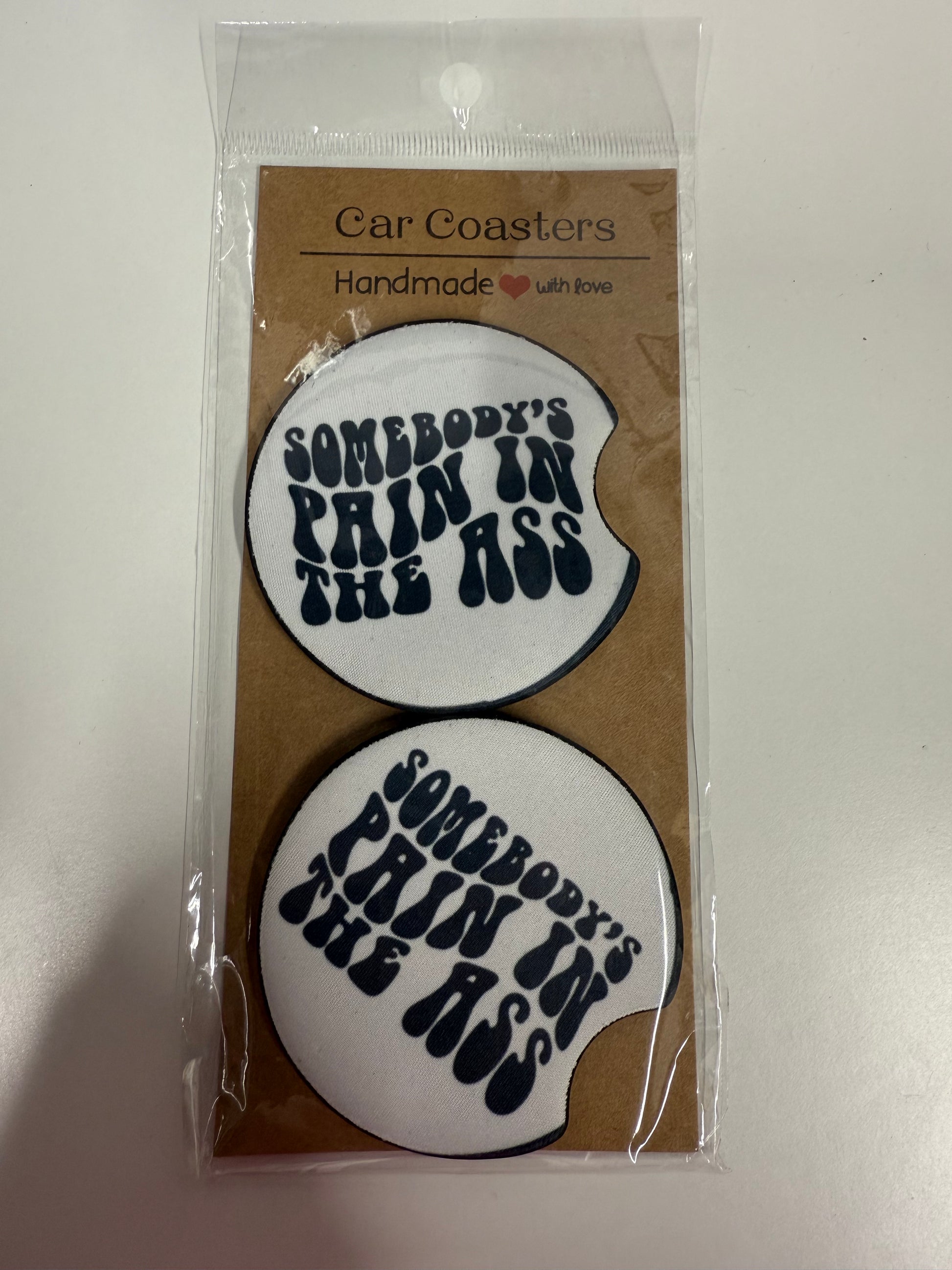 You will receive 1 set of car coasters (2 coasters) of the same design, these can be used inside a vehicle, on a table/counter top or even in your cup holder in your chair!