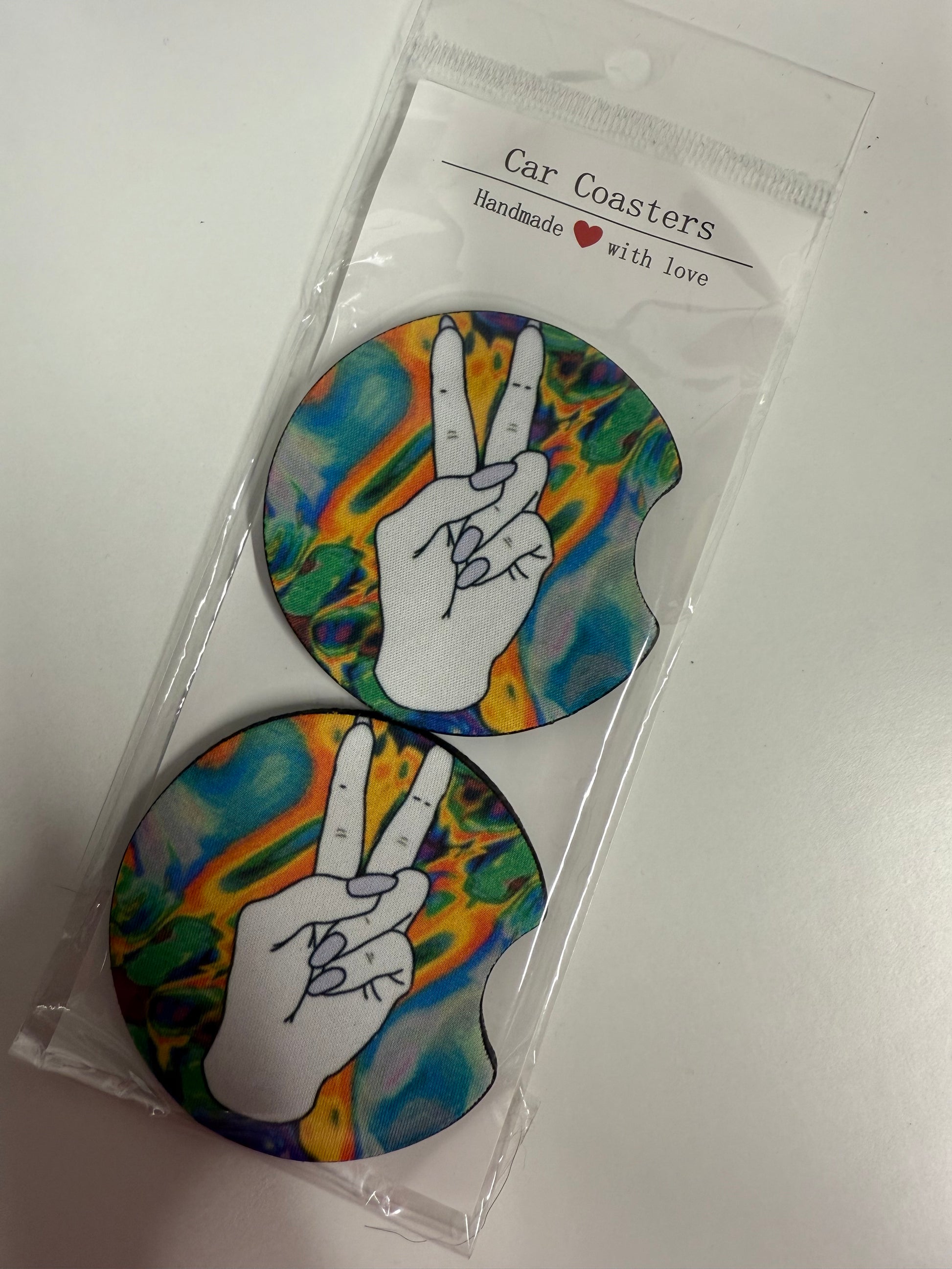 You will receive 1 set of car coasters (2 coasters) of the same design, these can be used inside a vehicle, on a table/counter top or even in your cup holder in your chair!
