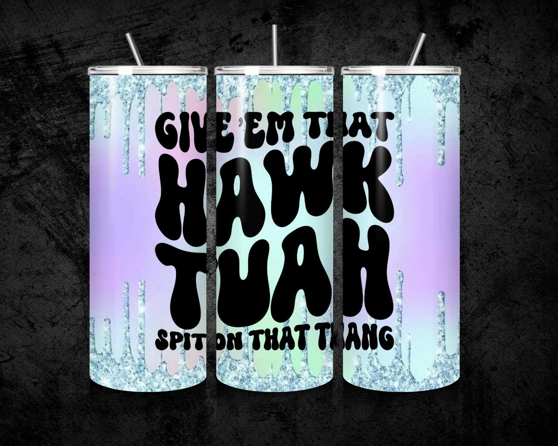 Introducing the 20oz Hawk Tuah Tumbler - the perfect companion for your daily adventures! Keep your drinks hot or cold for hours with this high-quality tumbler. Made with durable materials and a sleek design, it's the ideal choice for those on the go. Say goodbye to lukewarm beverages and hello to ultimate satisfaction.